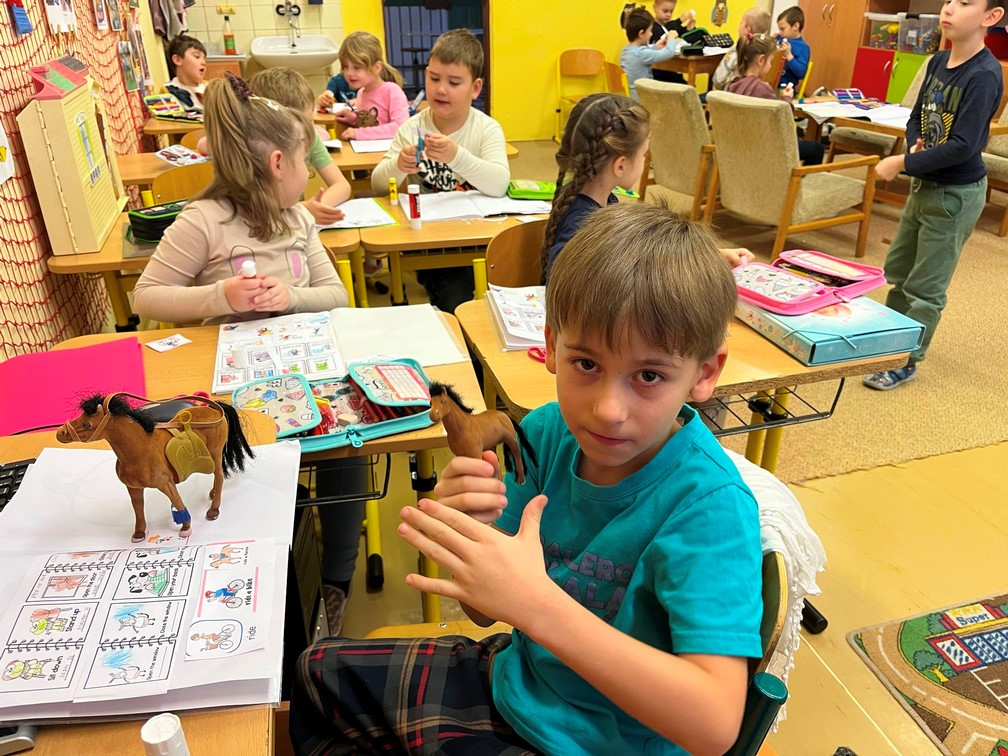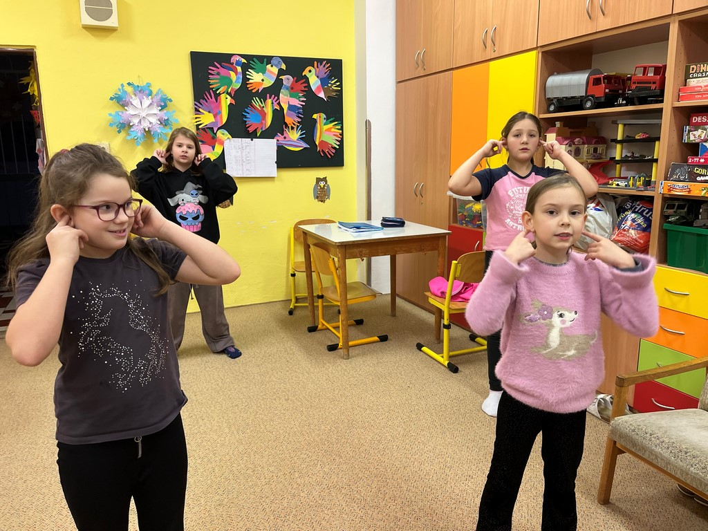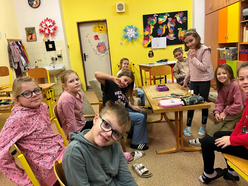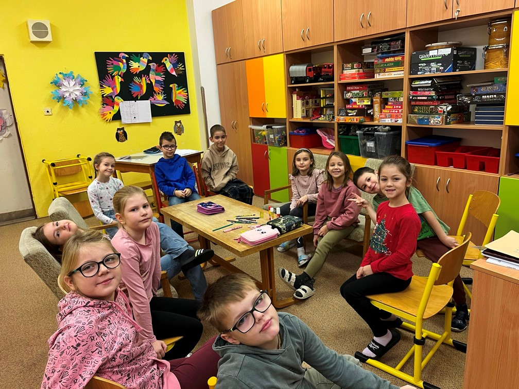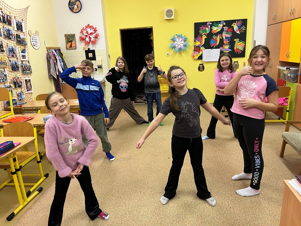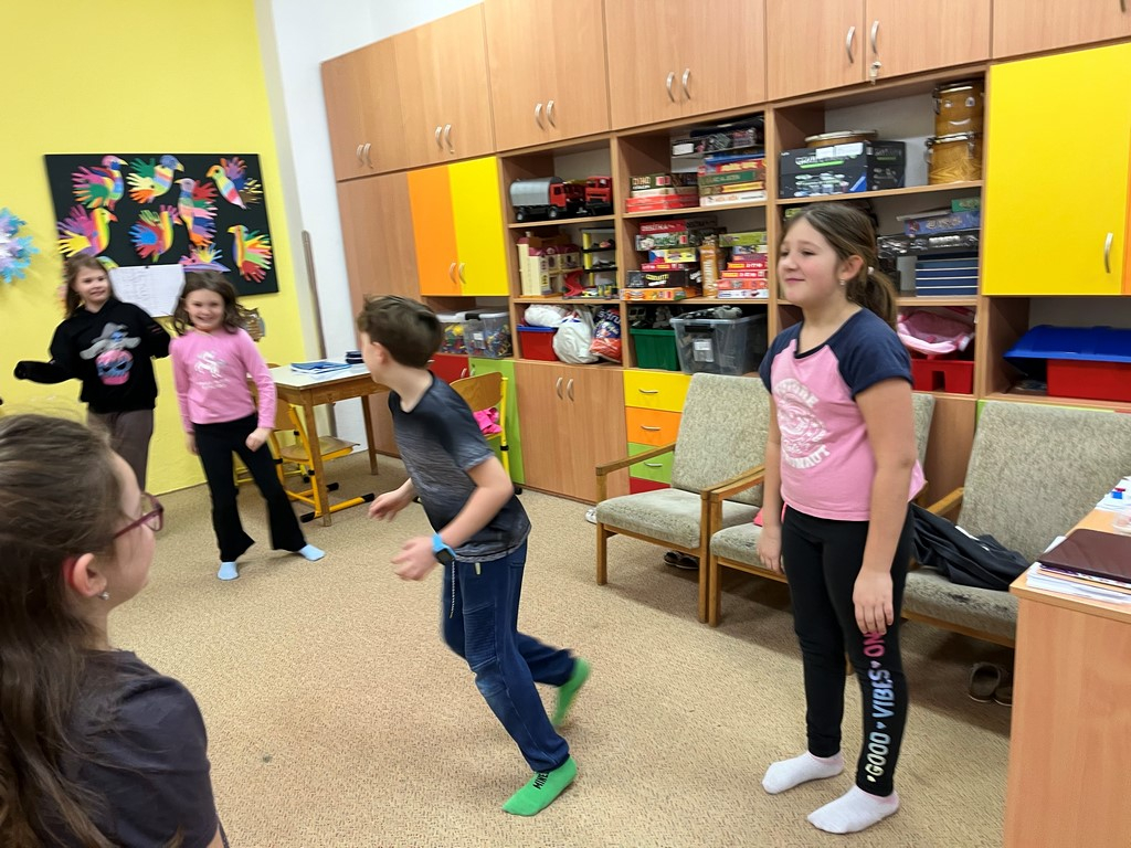 Žáci prvního stupně navštěvovali kroužek angličtiny, kde si procvičovali slovíčka, učili se jednoduché pozdravy a fráze a opakovali si správnou výslovnost pomocí písniček, říkanek a her.Prvňáčci se seznámili s cizím jazykem hravou formou a naučili se reagovat na základní pokyny. V novém roce se mohou těšit na další nové hry i říkanky.