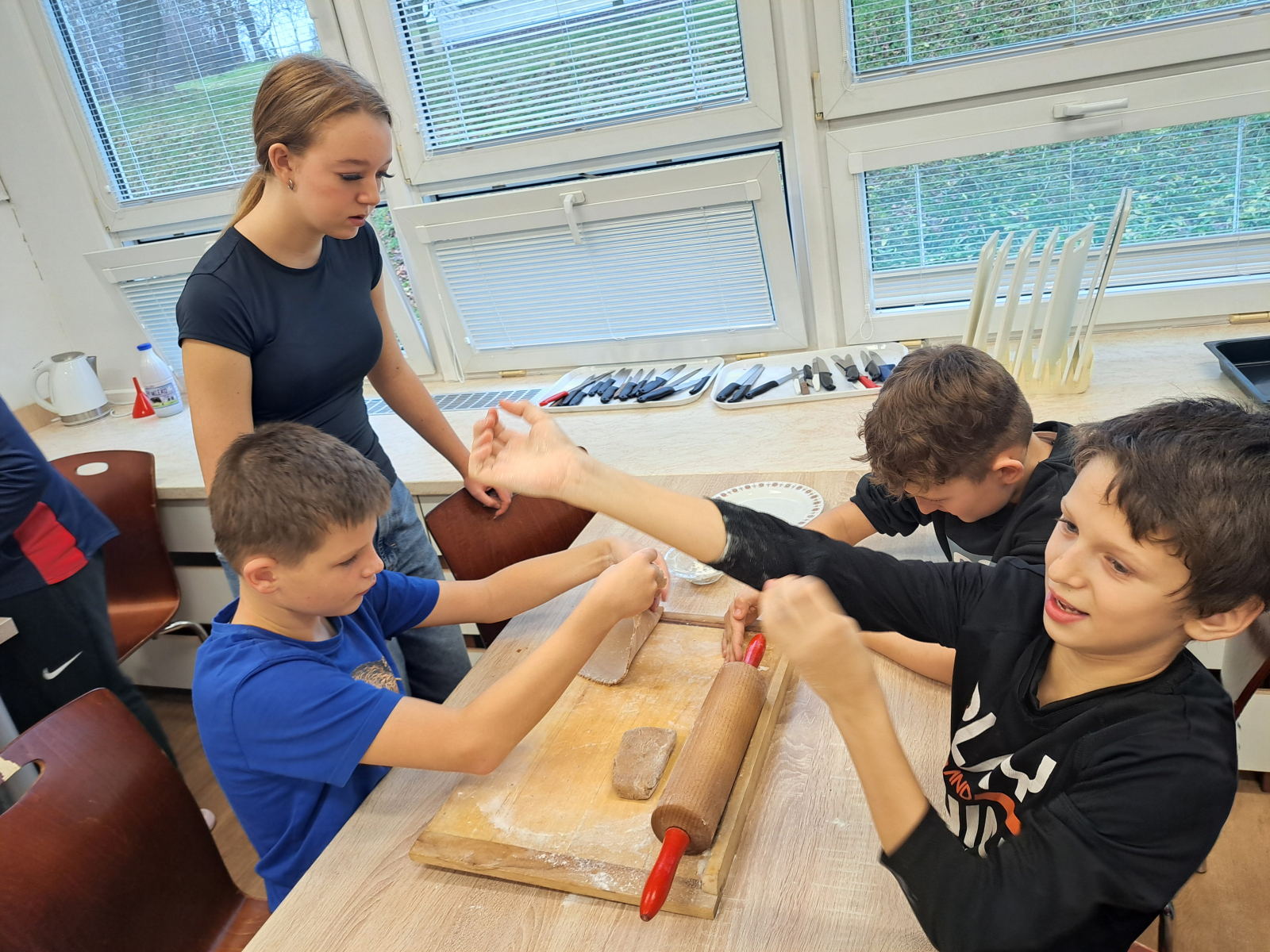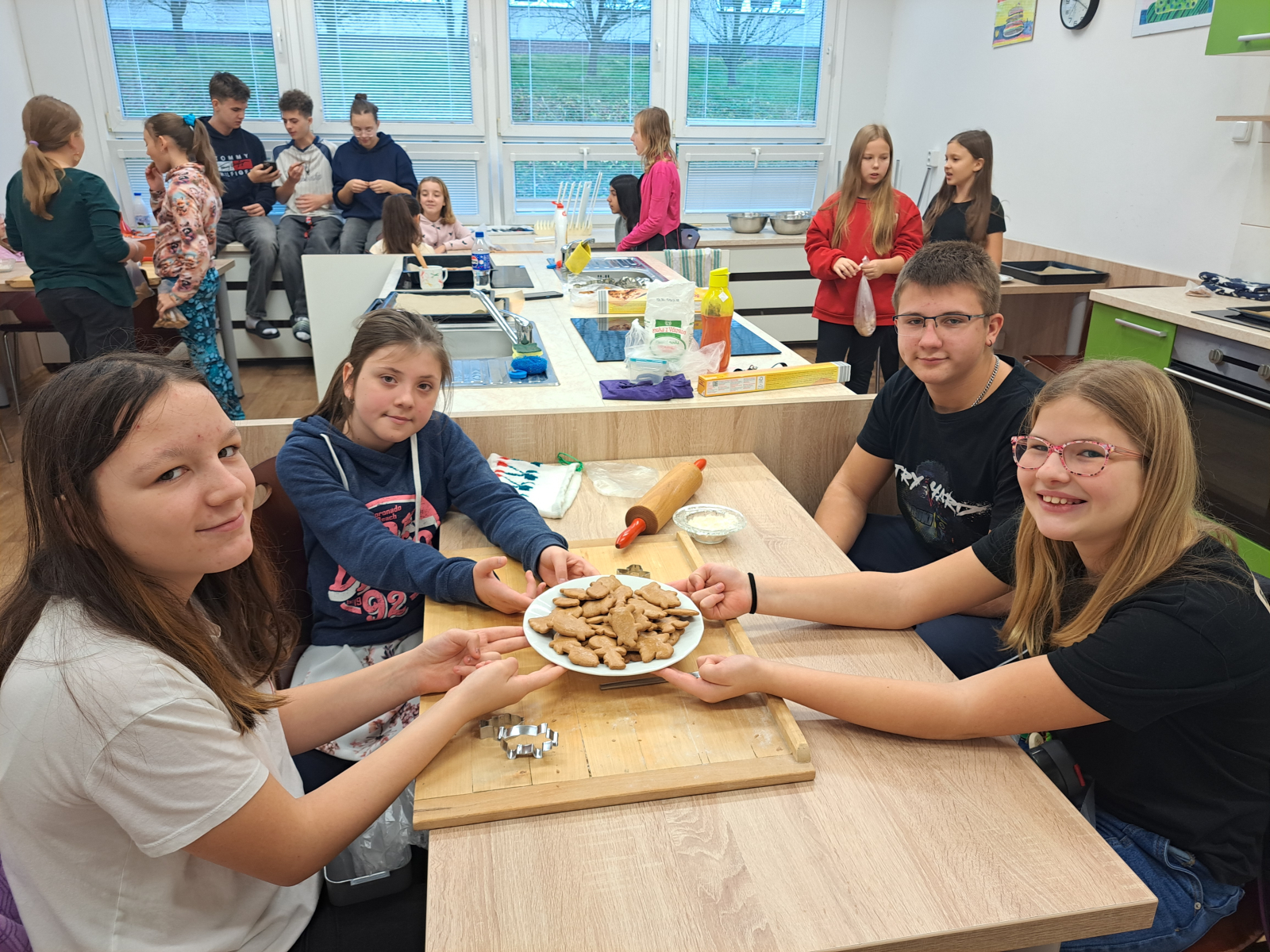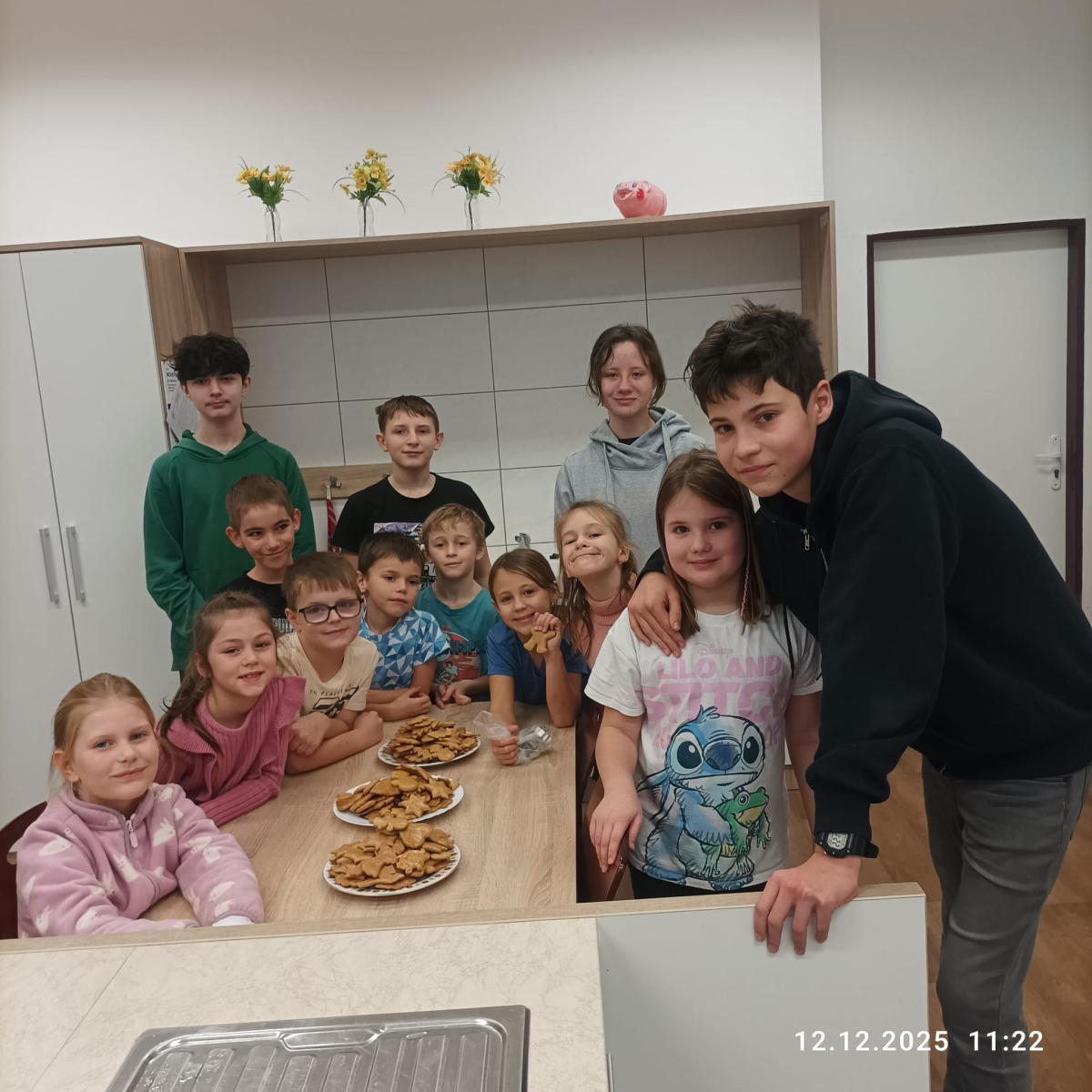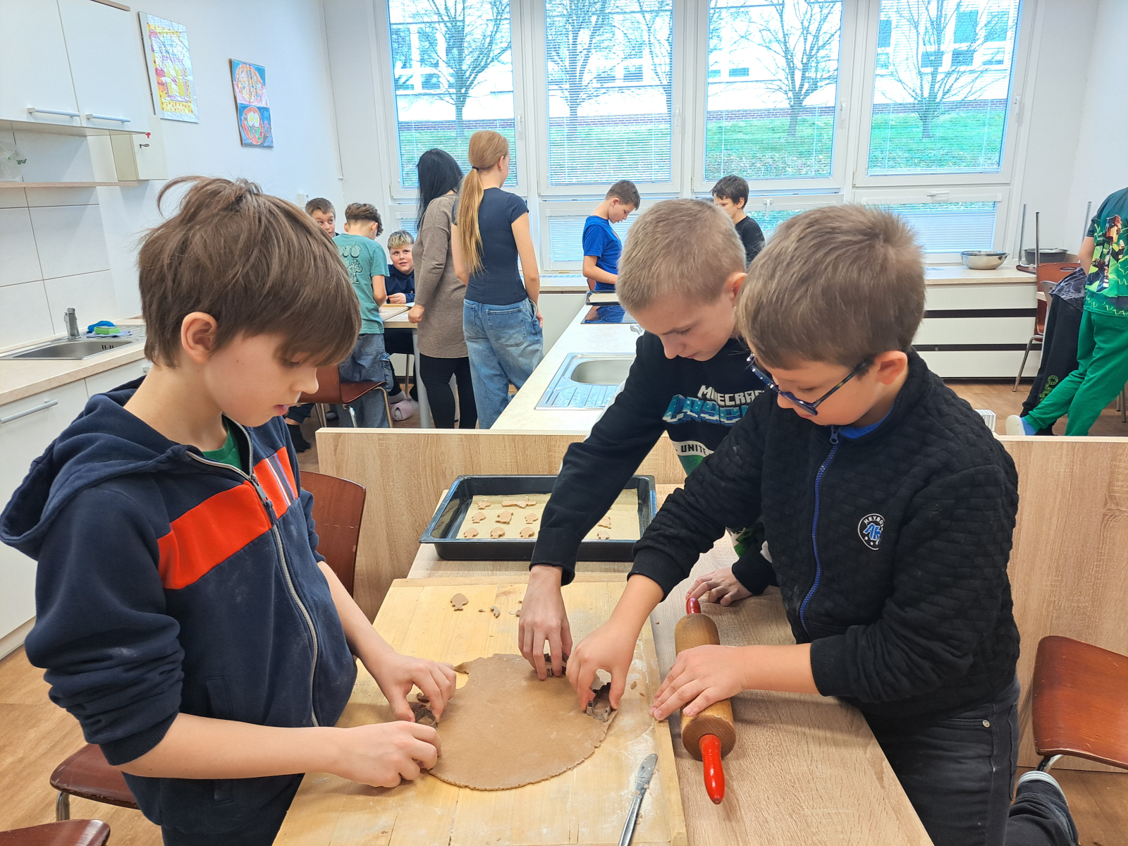 Během jednotlivých dnů se třídy postupně zapojily do přípravy vánočního cukroví. Děti si pod vedením žáků 8. a 9. ročníků vyzkoušely válení těsta a vykrajování tvarů. Na vše dohlédly paní asistentky. Pečení nebylo jen o sladkých pochoutkách, ale také o spolupráci, trpělivosti, vzájemné pomoci a práci v týmu. Pro mnohé z nich to byla také příležitost získat nové zkušenosti a dovednosti, které mohou využít i doma. Hotové cukroví si děti s hrdostí odnášely domů nebo jím potěšily své spolužáky a učitele. Celá akce se vydařila a přispěla k vytvoření přátelské a sváteční atmosféry, která neodmyslitelně patří k adventnímu času.