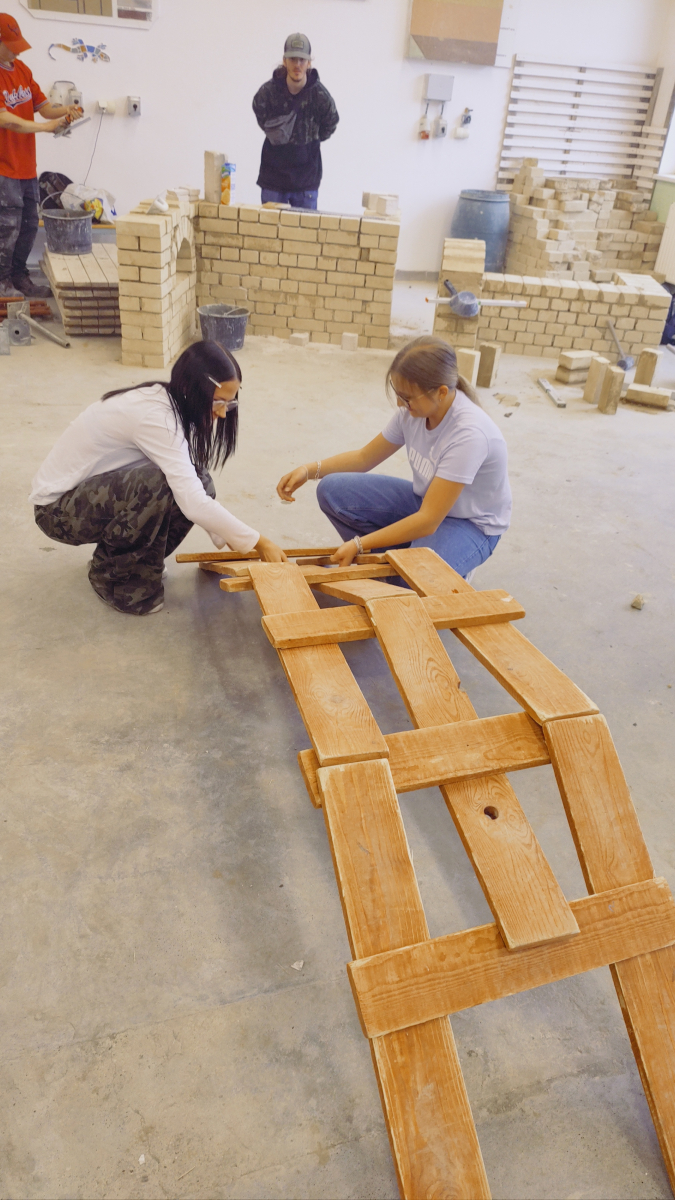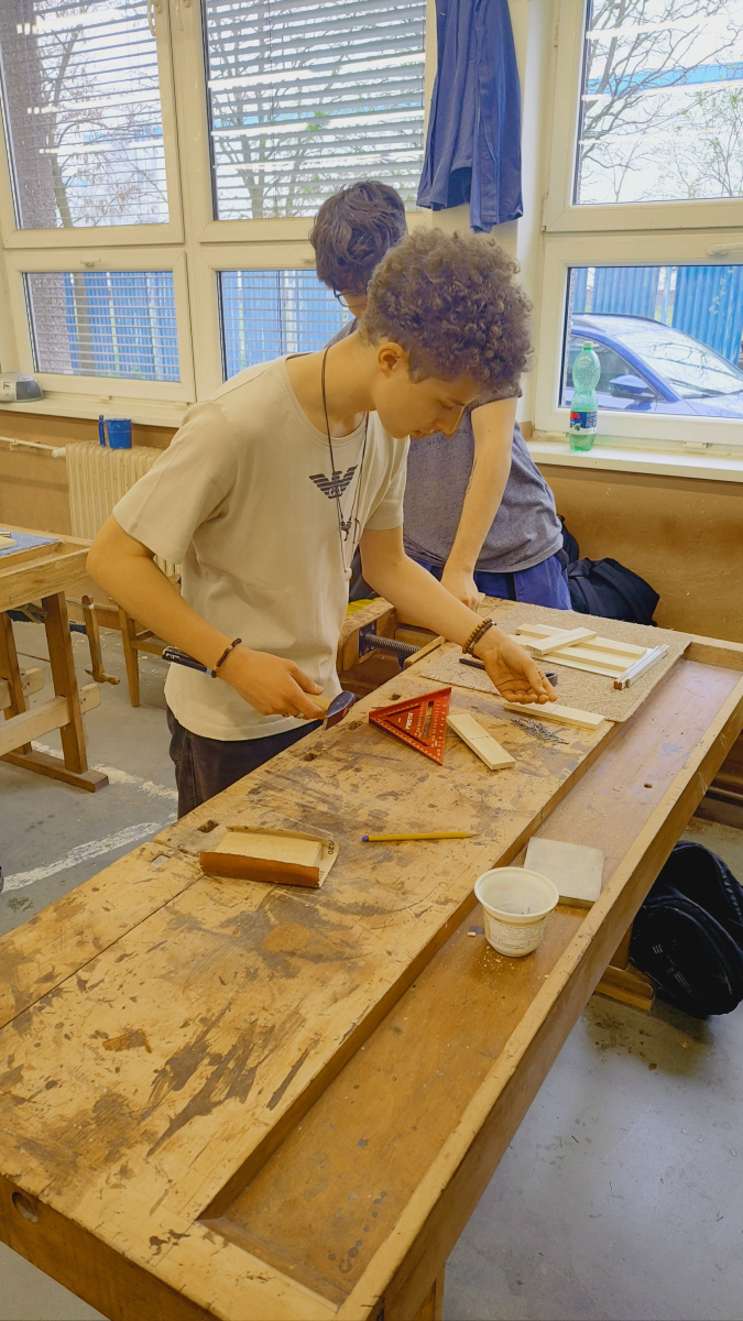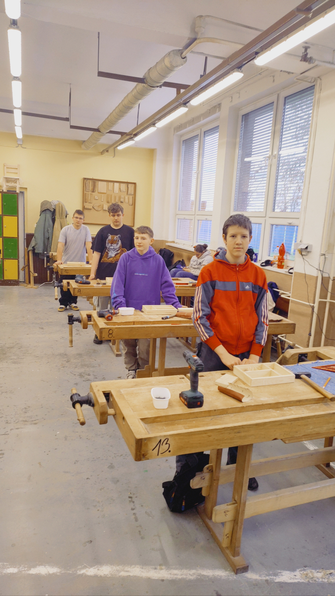 zaznamenaly práce zednické a práce stolařské – výroba krabičky.