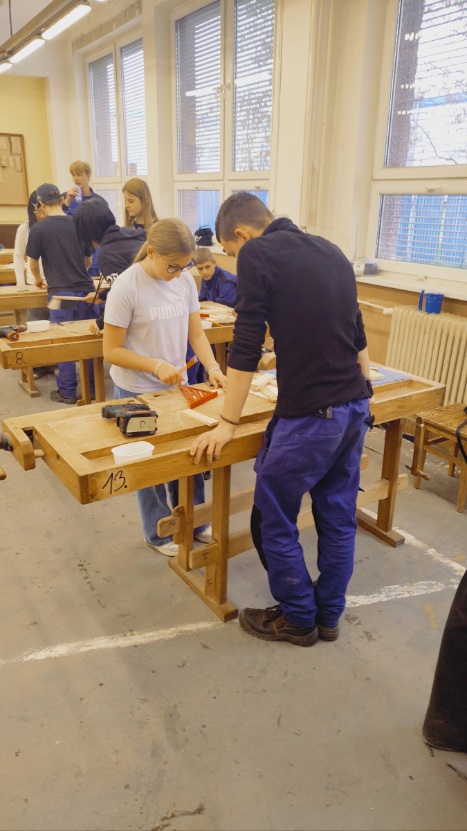 učebny, vyzkoušeli zámečnické, zednické, instalatérské a stolařské práce. Největší úspěch