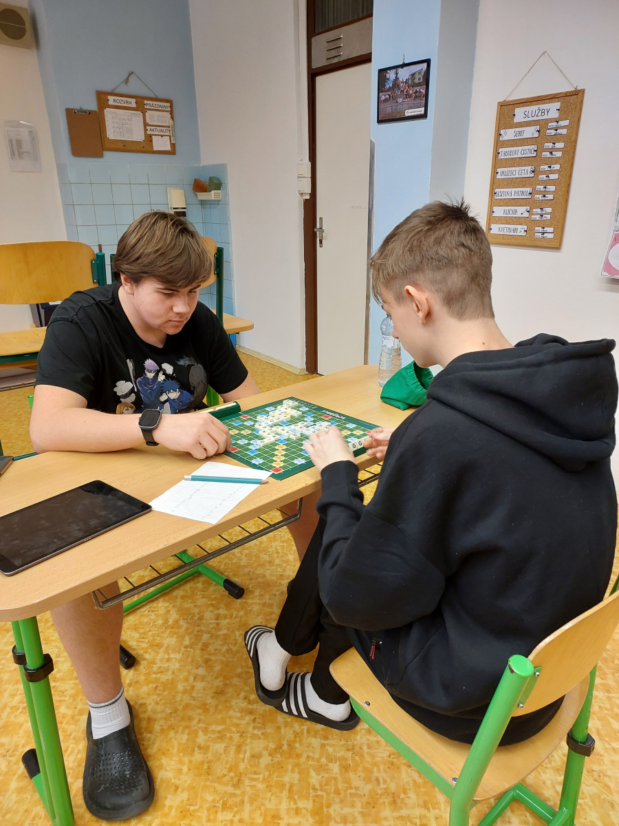 V úterý 3. února proběhlo školní kolo anglické hry Scrabble. Tentokrát se soutěž nesla v režii žáků třídy 9.C, kteří předvedli skvělé jazykové i strategické dovednosti. Vítězem se stal Lukas Podmol, druhé místo obsadil Jan Orlita a třetí příčku vybojoval Jiří Blažek.