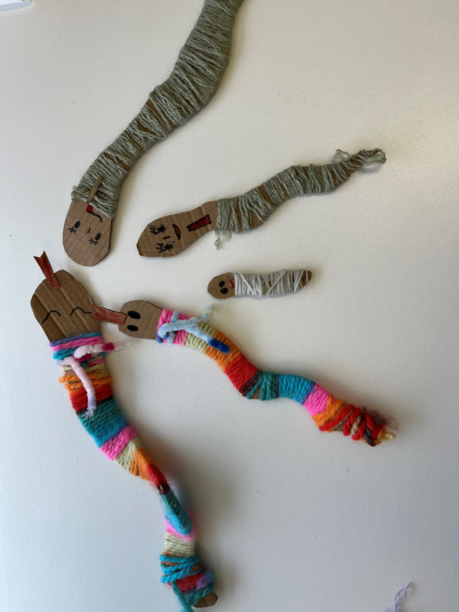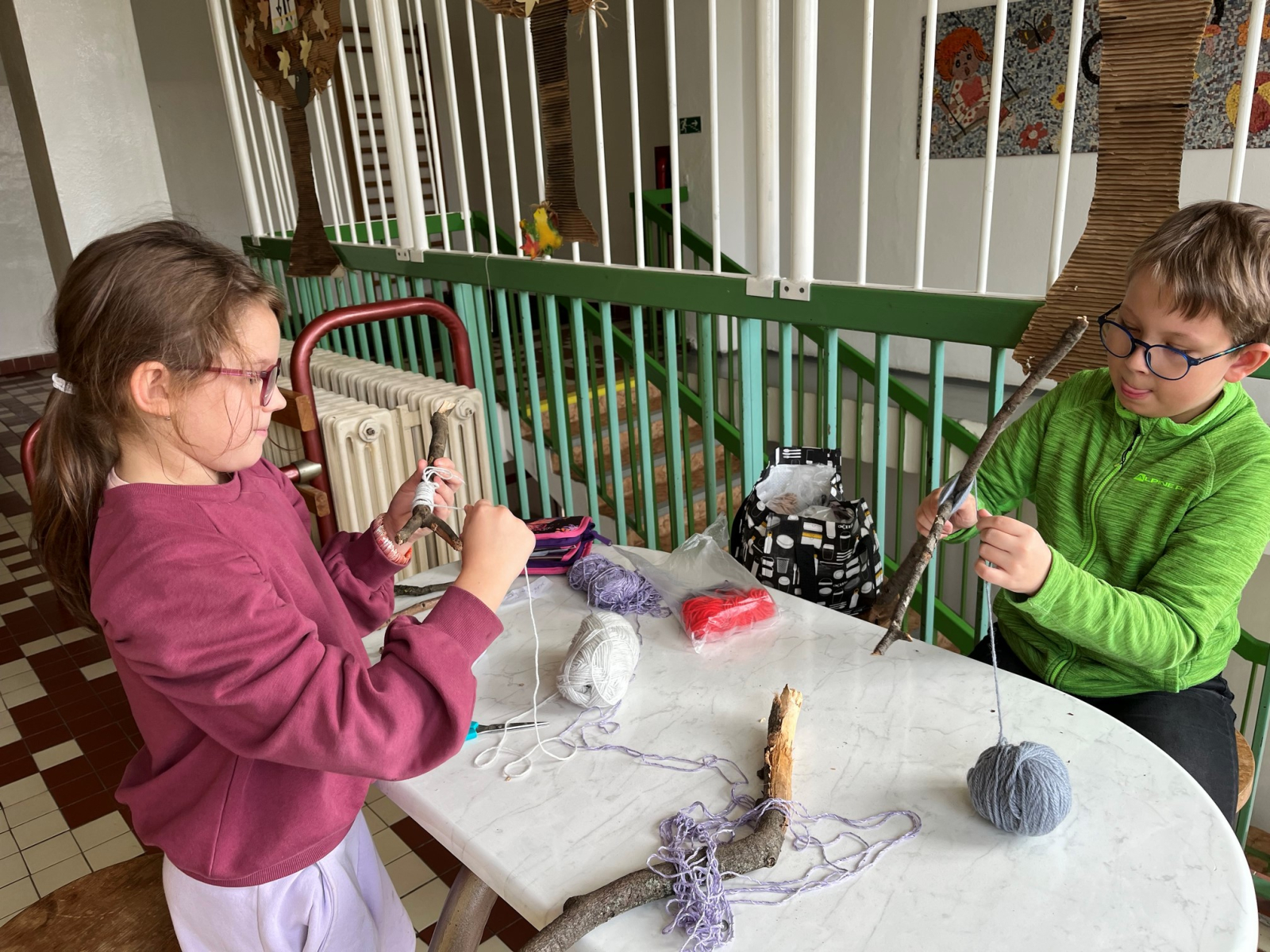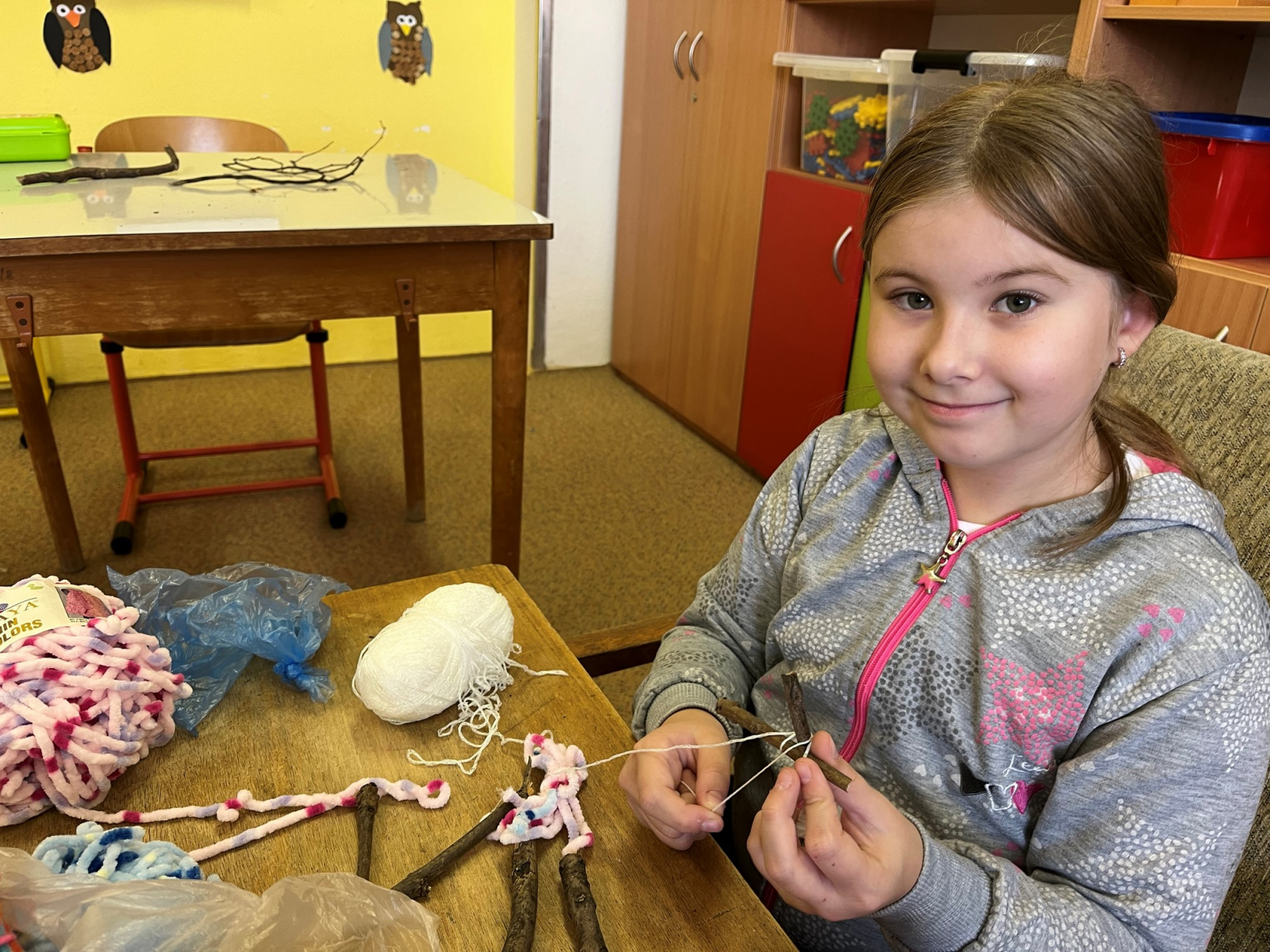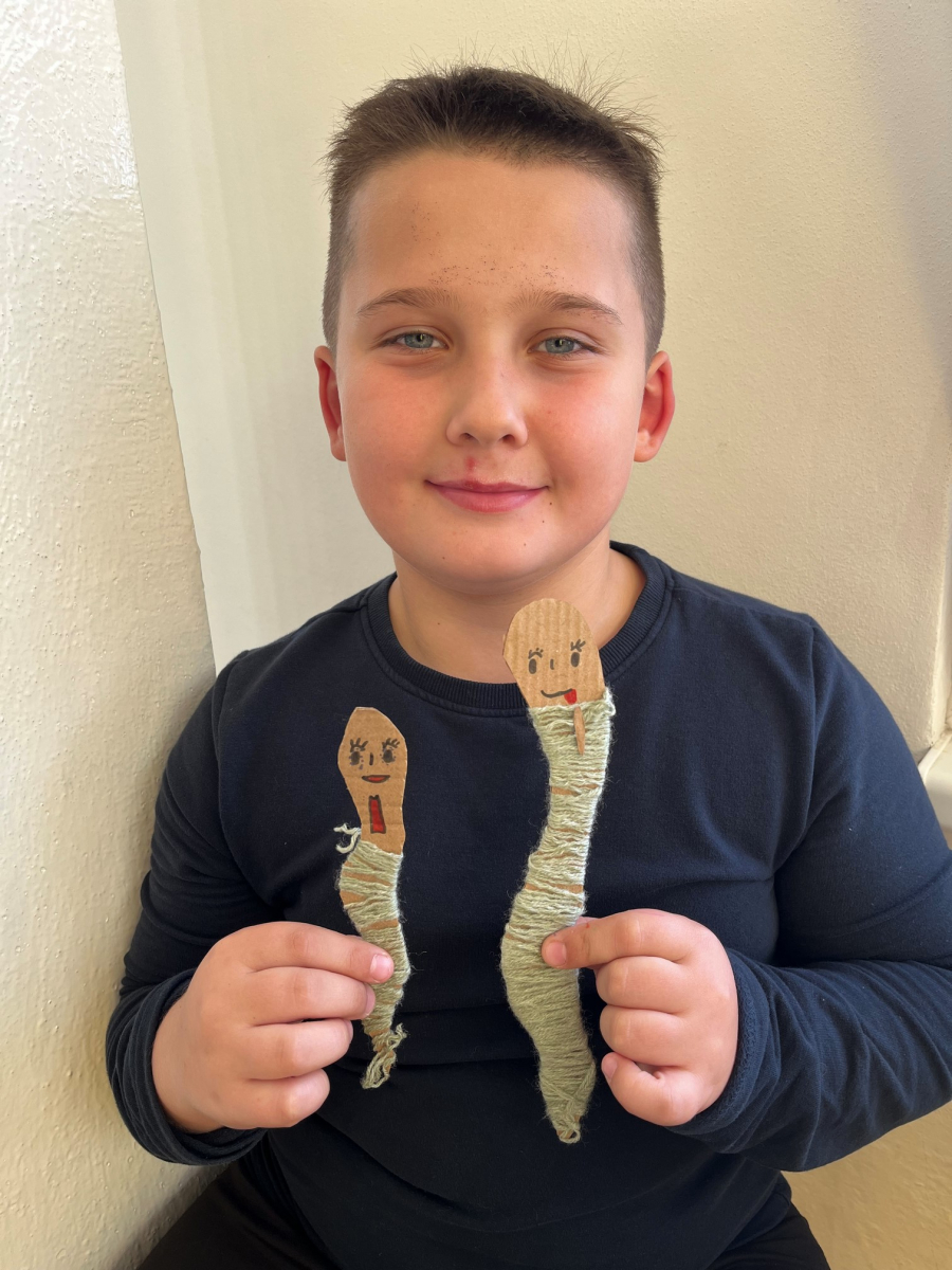 Starší žáci školní družiny často vyrábějí z bavlnek a dalších materiálů. Nejprve vyráběli strašidýlka z bavlnek a klacíků a později se pustili do výroby „ hmyzích kamarádů". K tomu potřebovali nejen bavlnky, ale i karton, ze kterého vystřihovali například červíky,ještěrky a háďátka. Při tvoření měli velkou trpělivost. Někteří si vyrobili jednobarevné kamarády, jiní zapojili fantazii a měli je různobarevné.