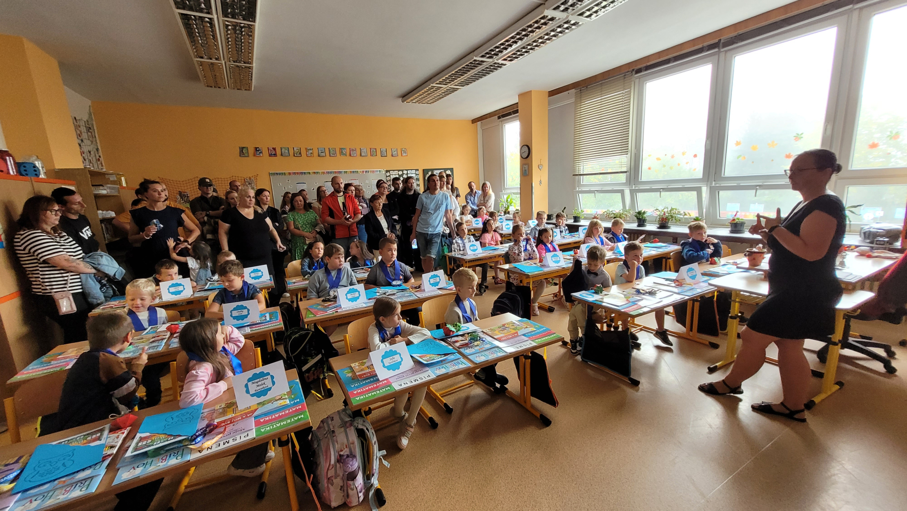 Pro ně to byl důležitý den – začátek jejich studijní cesty. Malí školáci se poprvé posadili do lavic, seznámili se s paní učitelkou a svými spolužáky. Nechyběl ani slavnostní okamžik, kdy byli naši prvňáčci pasováni na skutečné školáky.